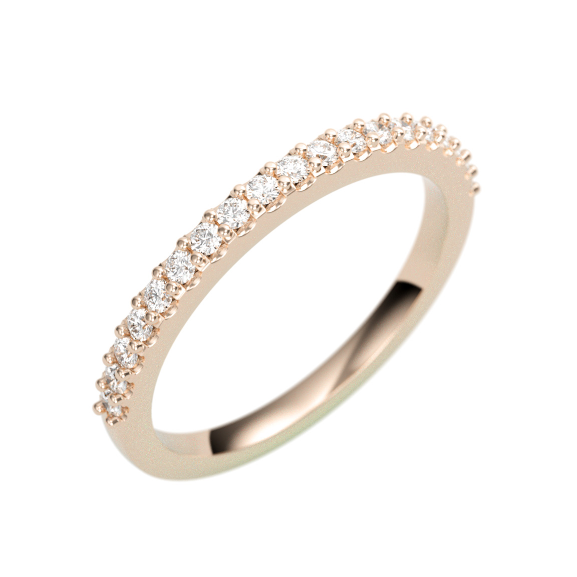 This half eternity wedding band features 0.29 total carat weight of melee and 2.4 grams of 14k gold. We can provide this ring in any size.
