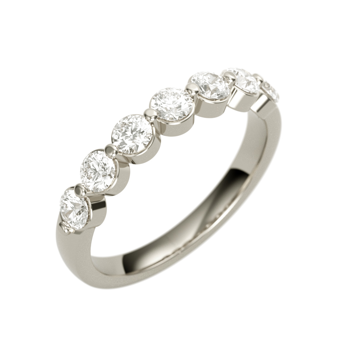 This wedding band features 0.77 total carat weight of melee and 3.3 grams of 14k gold. We can provide this ring in any size.